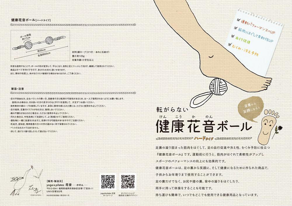 足裏の凝り固まった筋肉をほぐして、足の血行促進や冷え性、むくみ予防に役立つ『健康花音ボール』です。