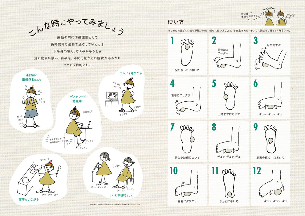 足の裏だけでなく、お尻や膝の裏、背中の凝りをほぐしたり、両手に持って体操をすることも可能です。